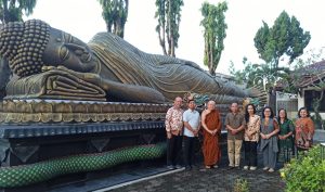 Usai diskusi, para tamu diajak menuju patung Sang Buddha Parinibbāna di pelataran vihara. Patung tersebut menggambarkan Sang Buddha dalam posisi berbaring menjelang wafat. Di bagian bawah patung terdapat ornamen naga, elemen yang menarik perhatian karena bukan bagian dari ikonografi tradisional Buddhis.